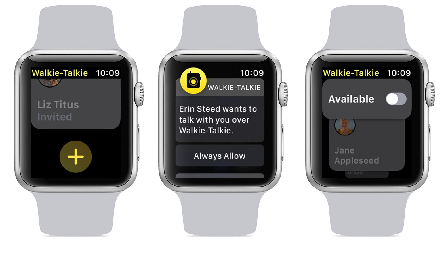 La aplicación Walkie Talkie en Apple Watch permite que dos usuarios que han aceptado una invitación de otro reciban chats de audio a través de una interfaz “push to talk” que recuerda los botones PTT en teléfonos celulares más antiguos.